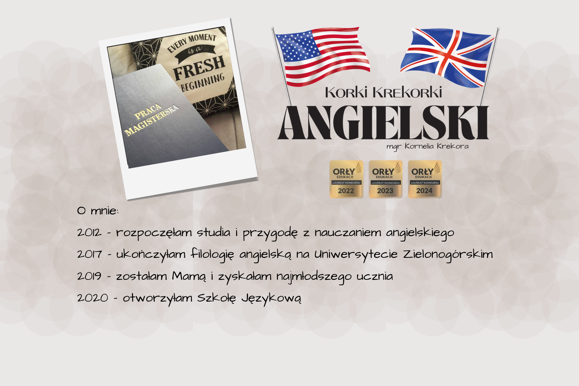☕Hej! To ja – Wasza anglistka z misją (i kawą w ręce), przez znajomych nazywana również facetką od angielskiego!☕ Ostatnio pojawia się tutaj coraz więcej nowych obserwujących i chciałabym przedstawić się Wam i powiedzieć o sobie kilka słów. 📚Uczę z pasją, energią i... czasem z lekkim rozmachem, który zdarza się tylko ludziom zakochanym w swojej pracy! 😄 Już od 13 lat prowadzę zajęcia z języka angielskiego – czyli od czasu, gdy TikTok jeszcze nie istniał, a "selfie" robiło się lustrzanką. 😅 📚W 2017 roku ukończyłam 5-letnie studia magisterskie na Uniwersytecie Zielonogórskim – i choć mogłam wtedy rzucić się w wir kariery od razu, to... coś we mnie potrzebowało jeszcze chwili. Coś musiało dojrzeć. I faktycznie – w 2019 roku przyszedł na świat mój syn, który szybko pokazał mi, że multitasking to nie talent, tylko konieczność. 😅 To właśnie on był moją największą "życiową rewolucją" i jednocześnie inspiracją, by działać dalej – odważnie, świadomie, po swojemu. 📚W 2020 roku, gdy świat zamknął się w domach, ja otworzyłam swoją szkołę językową. I choć wszyscy piekli chleb i sadzili awokado z pestki, ja… postanowiłam uczyć dalej. Od tamtej pory rozwijam się razem z Wami i dzięki Wam już od 5 lat! ❤️ 📚To, co osiągnęłam – wszystkie małe i duże sukcesy – to też Wasza zasługa. Bo każda zdana matura, przełamana bariera językowa i „Oh my God, I finally understand Present Perfect!” to powód do wspólnej dumy. 🚀A prywatnie? Jestem mamą pełnego energii 6-latka, który – nie oszukujmy się – z mamą anglistką i nauczycielką nie ma lekko. Flashcards w łazience? Check. Poprawa wymowy słowa "three" podczas kolacji? Check. 🚀Wolny czas spędzam aktywnie – na rowerze, siłowni, w ruchu, który pozwala mi ładować baterie i... nieco rozprostować kręgosłup po długich godzinach przy tablicy. Dzięki temu mam też poczucie rozwoju osobistego, a ten przekłada się bezpośrednio na rozwój szkoły – bo przecież tylko szczęśliwy nauczyciel to dobry nauczyciel! Dziękuję, że jesteście – i że mogę robić to, co kocham najbardziej (czyli mówić po angielsku, poprawiać wymowę i podsuwać gramatykę nawet tam, gdzie nikt się jej nie spodziewał 😅). Let’s keep going – bo najlepsze dopiero przed nami! Facebook Facebook Instagram Instagram TikTok TikTok